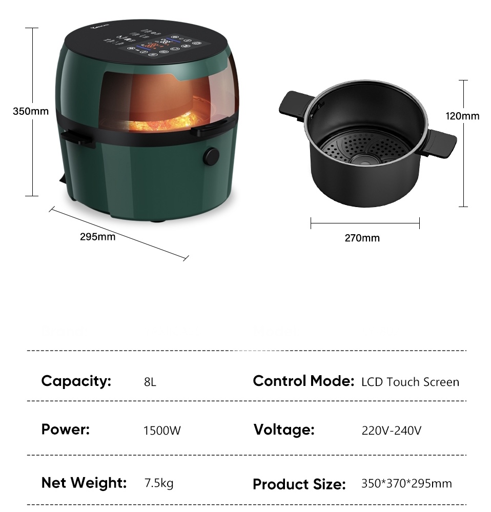 The air fryer well serves 6-10 people. Enjoy a family dinner and have parties to your heart's content!