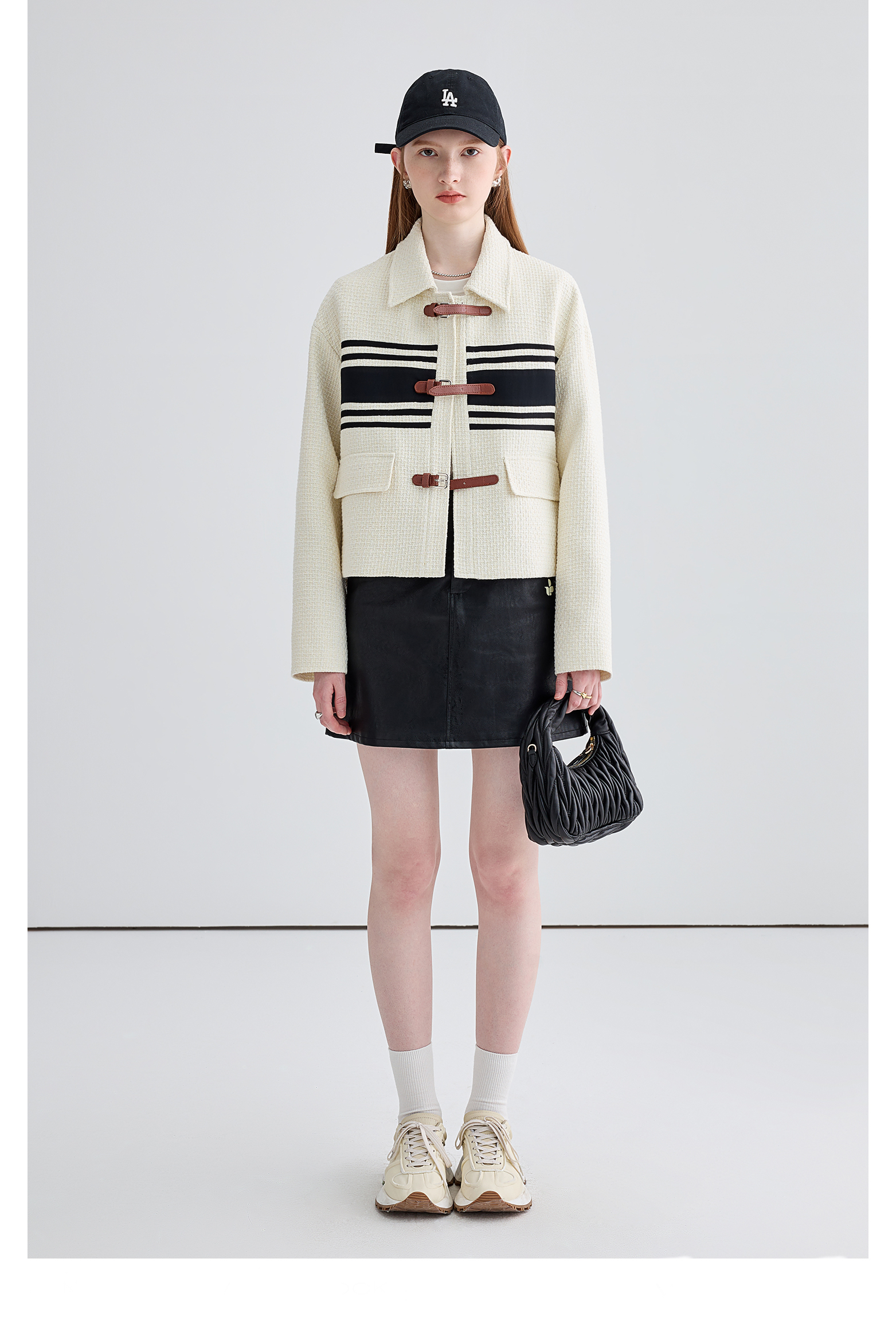 Buckle-Belt Stripe Cardigan.