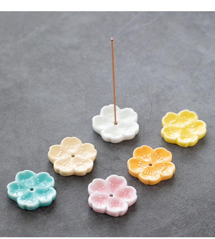 Ceramic cherry blossoms shape incense burner aromatherapy stick holder.