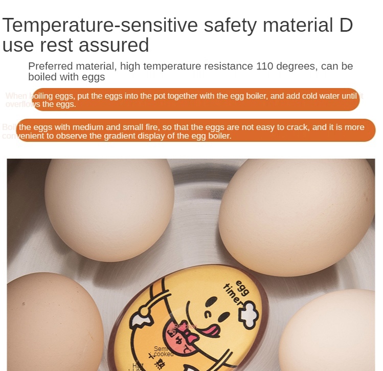 Easy to master the degree of raw eggs, cooking all kinds of food. Small and cute appearance, easy to use. Food grade material safe and non-toxic, use rest assured. Odorless, non-toxic, dust-resistant, durable, impermeable and easy to clean. With this egg timer, no more under cooked or overcooked eggs.